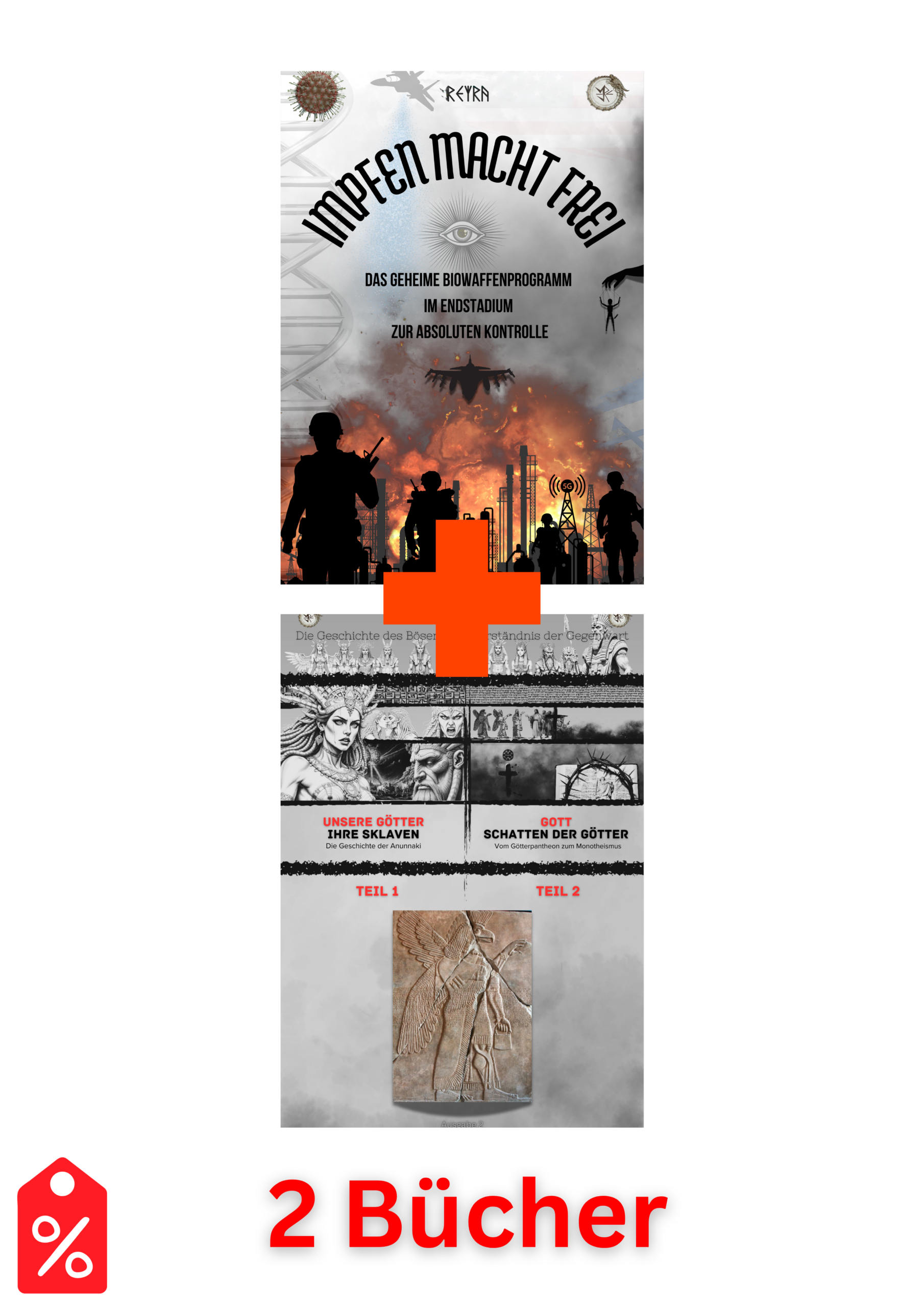 2 Bücher; Impfen macht frei, DGDBZVDG I+II: Unsere Götter, ihre Sklaven – Gott, Schatten der Götter